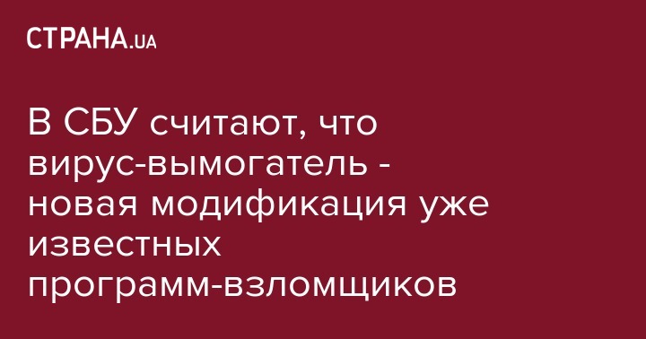Поражение компьютерных сетей произошло с помощью ранее известного, но модифицированного вируса-ransomware (вируса-вымогателя), который в настоящее время изучается, сообщает пресс-центр Службы безопасности Украины.