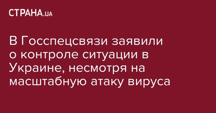 В Госспецсвязи заявили о контроле ситуации в Украине, несмотря на масштабную атаку вируса
