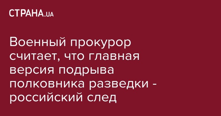 Основная версия в деле о теракте, в результате которого сегодня в Киеве погиб сотрудник Главного управления разведки Министерства обороны Украины, полковник Максим Шаповал,  - это российский след. Об этом заявил главный военный прокурор Анатолий Матиос, пишет "Интерфакс-Украина".