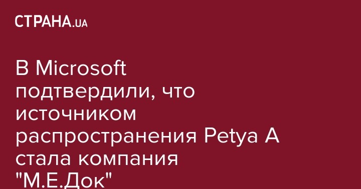 В Microsoft подтвердили, что источником распространения Petya A стала компания "М.Е.Док"