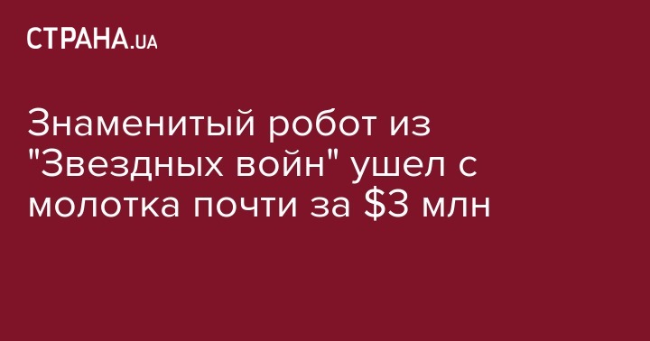 Робота R2-D2, который использовался в нескольких частях космической саги "Звездные войны", продали на аукционе в Калифорнии за 2,76 млн долл. Об этом сообщает Associated Press.