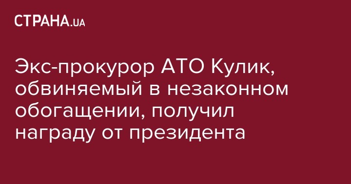 Экс-прокурор АТО Кулик, обвиняемый в незаконном обогащении, получил награду от президента