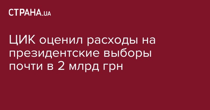 Центральная избирательная комиссия (ЦИК) оценивает необходимые расходы на подготовку и проведение президентских выборов в 2019 году в 1,948 миллиарда гривен, говорится в ответе секретариата ЦИКа на запрос Украинских новостей.