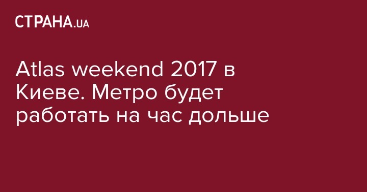Коммунальное предприятие "Киевский метрополитен" 30 июня и 1 июля будет работать на час дольше в связи с проведением музыкального фестиваля "Atlas weekend 2017".