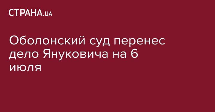Оболонский районный суд Киева перенес на 6 июля рассмотрение дела против экс-президента Виктора Януковича, который обвиняется в государственной измене. Об этом сообщил председательствующий судья Владислав Девятко, передают "Украинские новости".