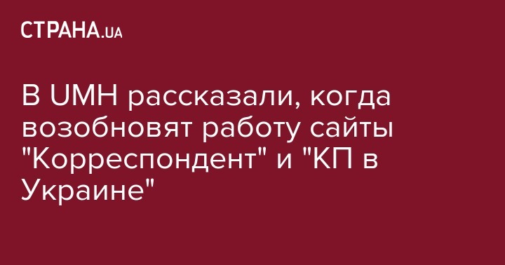 В UMH рассказали, когда возобновят работу сайты "Корреспондент" и "КП в Украине"