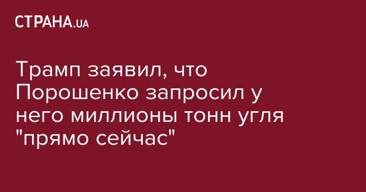"Украина запросила у нас миллионы, миллионы тонн угля прямо сейчас", - сказал Трамп, выступая в Минэнерго США.