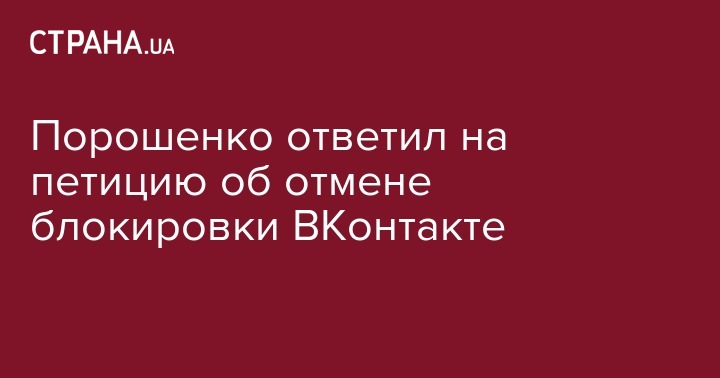 Президент Петр Порошенко отказался разблокировать российскую соцсеть "ВКонтакте". Об этом сообщается в ответе главы государства на петицию о разблокировке социальной сети, опубликованном на его официальном сайте.