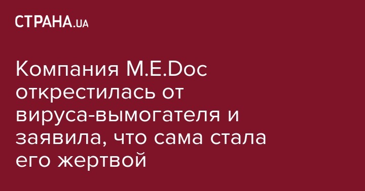 Компания M.E.Doc открестилась от вируса-вымогателя и заявила, что сама стала его жертвой