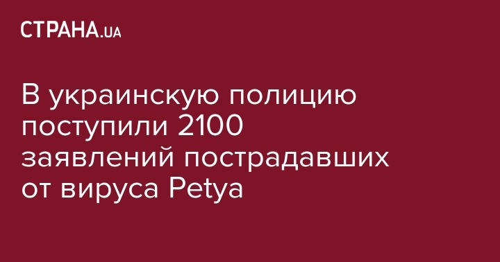 В Национальную полицию поступило уже 2108 сообщений об инфицировании компьютерных сетей вирусом-шифровальщиком Petya. Об этом сообщает пресс-служба Нацполицию.