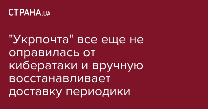 ПАО "Укрпочта" продолжает восстанавливать процесс доставки периодических изданий после массированной кибератаки.