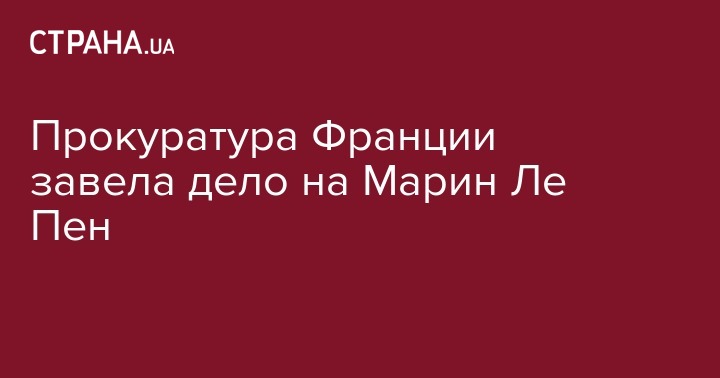Прокуратура Франции объявила о начале уголовного расследования в отношении лидера крайне правой партии "Национальный фронт" Марин Ле Пен. Об этом сообщает ВВС.