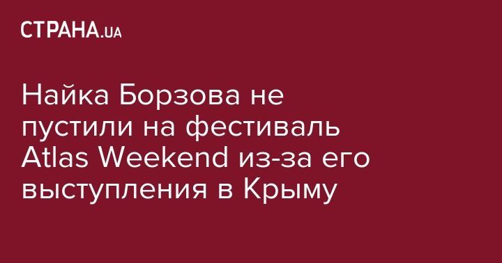 Напомним, Борзов стал уже третьим российским исполнителем из лайн-апа фестиваля Atlas Weekend, которого не пропустили через украинскую границу. Первыми отказ на въезд получили музыканты группы "Крематорий", вчера стало известно, что в Киев не сможет приехать Андрей Лысиков, выступающий под псевдонимом Дельфин. Все они давали концерты в Крыму и пересекали границу полуострова в обход украинского законодательства.