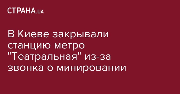 Ранее мы писали, что станция метро "Театральная" в Киеве закрыта из-за сообщения о минировании.