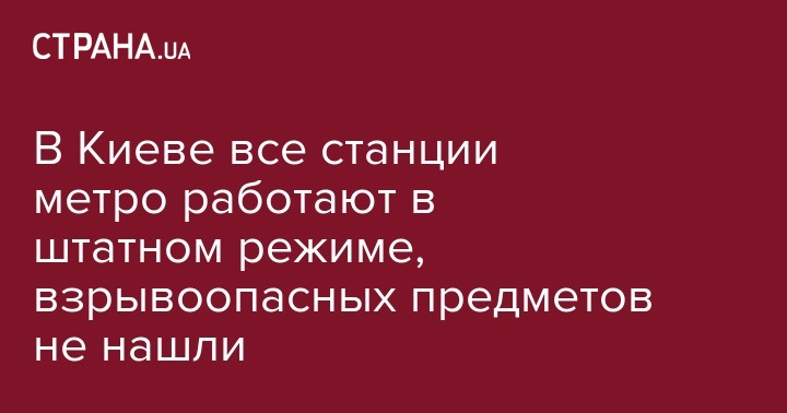 В Киеве все станции метро работают в штатном режиме, взрывоопасных предметов не нашли