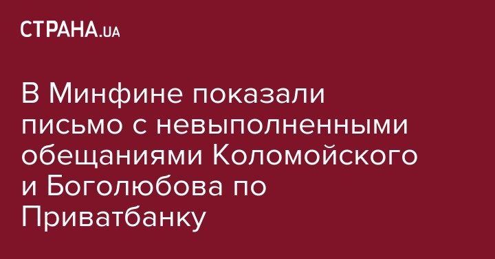В Минфине показали письмо с невыполненными обещаниями Коломойского и Боголюбова по Приватбанку