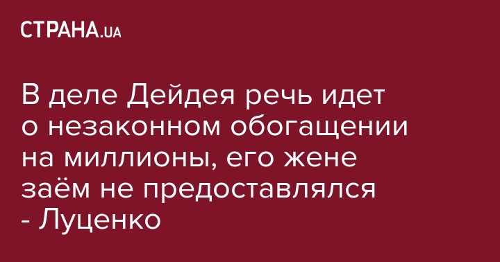 В деле Дейдея речь идет о незаконном обогащении на миллионы, его жене заём не предоставлялся - Луценко