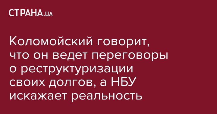 "Могу сообщить, что бывшие владельцы "ПриватБанка", согласно взятым на себя обязательствам, участвуют в переговорном процессе по реструктуризации своих кредитов с консорциумом компаний, которые получили мандат на представительство интересов Минфина и "ПриватБанка", который был согласован с Международным валютным фондом ", - заявил Коломойский.