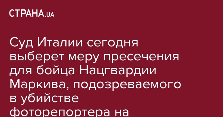 Во вторник, 4 июля, суд Италии должен выбрать меру пресечения на время досудебного следствия для украинца Виталия Маркива, которого подозревают в причастности к убийству итальянского фотографа Андреа Рокелле и его русского переводчика Андрея Миронова. Они погибли под Славянском в мае 2014 года. Об этом сообщает ТСН.