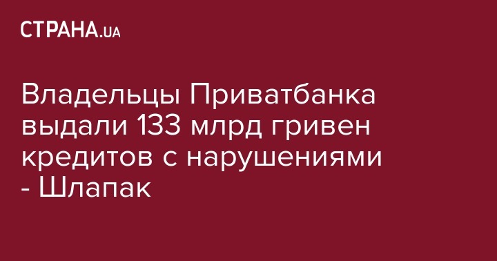 Владельцы Приватбанка выдали 133 млрд гривен кредитов с нарушениями - Шлапак