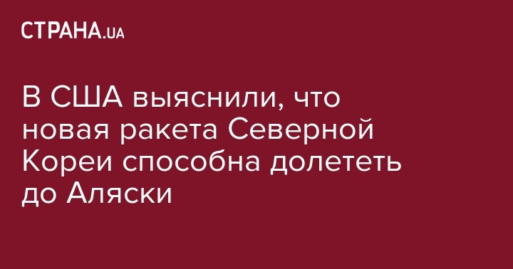 В США выяснили, что новая ракета Северной Кореи способна долететь до Аляски