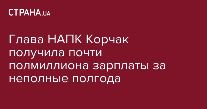 Глава НАПК Корчак получила почти полмиллиона зарплаты за неполные полгода