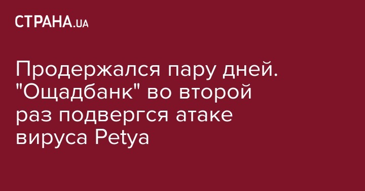 Государственный "Ощадбанк" во второй раз подвергся атаке вируса Petya. Об этом "Стране" сообщил источник в банке.