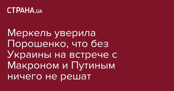 Ангела Меркель заверила Петра Порошенко, что во время встречи лидеров Германии и Франции с Путиным ничего о судьбе Украины без Украины решаться не будет. Об этом она сказала во время телефонного разговора с президентом Украины, сообщает пресс-служба Порошенко.