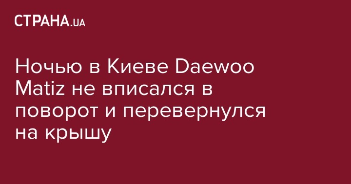 Ночью 6 июля в Дарницком районе Киева на крышу перевернулся красный автомобиль Daewoo Matiz.