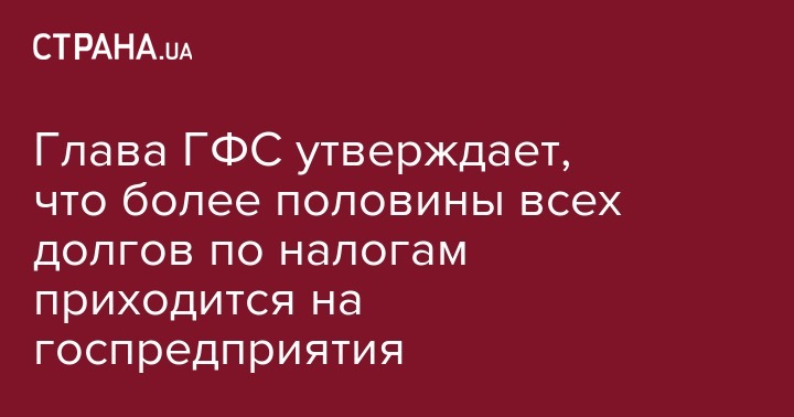 Доля предприятий государственной формы собственности в общей задолженности перед Государственной фискальной службой составляет более 50%. Об этом сообщил и.о. председателя ГФС Мирослав Продан, пишут "Украинские новости".