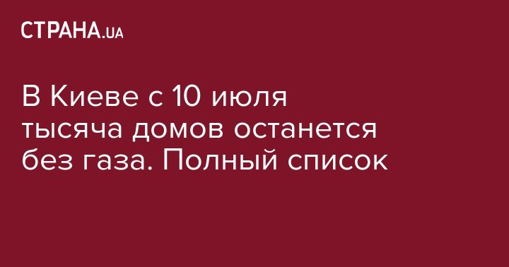 В Киеве с 10 июля тысяча домов останется без газа. Полный список