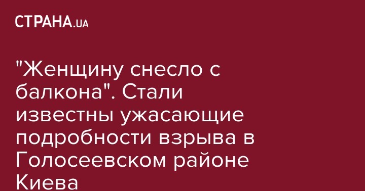 "Женщину снесло с балкона". Стали известны ужасающие подробности взрыва в Голосеевском районе Киева