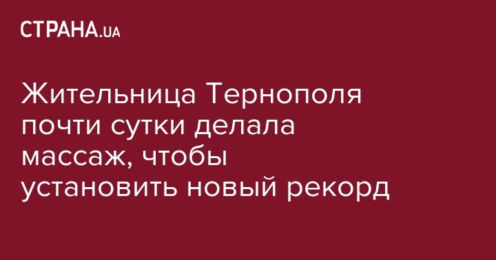 Массажистка из Тернополя Оксана Петришин установила новый рекорд Украины по самому продолжительному сеансу массажа. Женщина 18 часов подряд делала массаж, даже ночью. Об этом сообщает pressclub.te.ua.