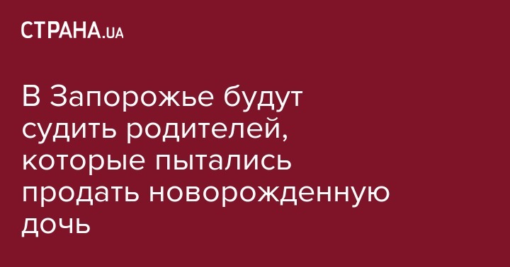 Прокуратура Запорожской области направила в суд обвинительный акт в уголовном производстве в отношении семейной пары, которая продала своего новорожденного ребенка после выписки из роддома. Об этом сообщает пресс-служба прокуратуры.