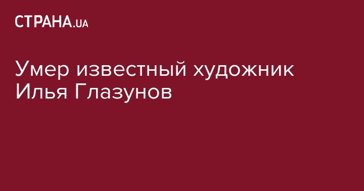 "Илья Глазунов скончался сегодня ночью",- сказал источник в окружении художника.