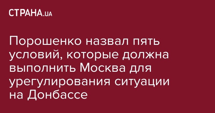 После встречи с госсекретарем США Рексом Тиллерсоном президент Петр Порошенко назвал пять условий, которые должна выполнить Москва для стабилизации ситуации на Востоке Украины. Об этом он сказал во время брифинга.