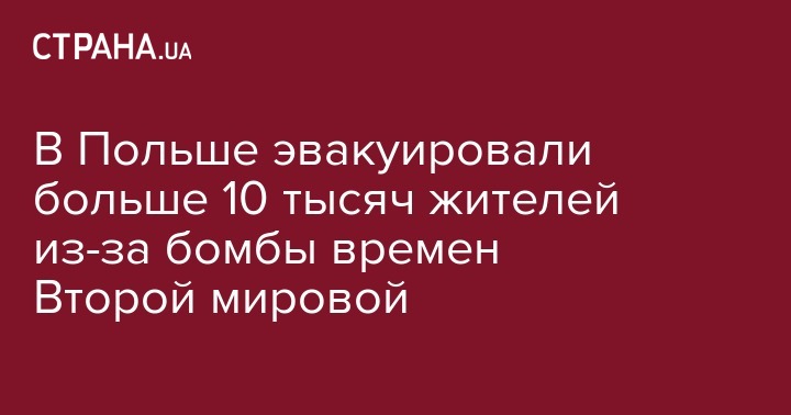 В Польше правительство собирается эвакуировать около 10 тысяч жителей Белостока и гмины Супрасль на время вывоза 500-килограммовой бомбы времен Второй мировой войны. Об этом сообщает Fox News.