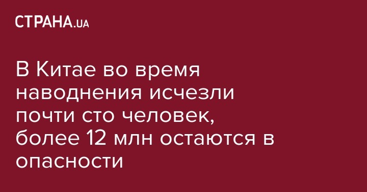 В Китае во время наводнения исчезли почти сто человек, более 12 млн остаются в опасности