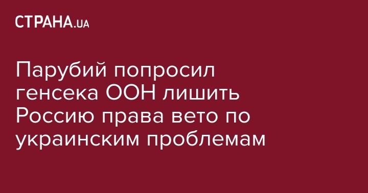 Председатель Верховной Рады Андрей Парубий во время встречи с генсеком ООН Антонио Гуттеришем заявил, что необходимо рассмотреть вопрос лишения России "права вето" на Совбезе ООН. Об этом Парубий написал в Twitter.