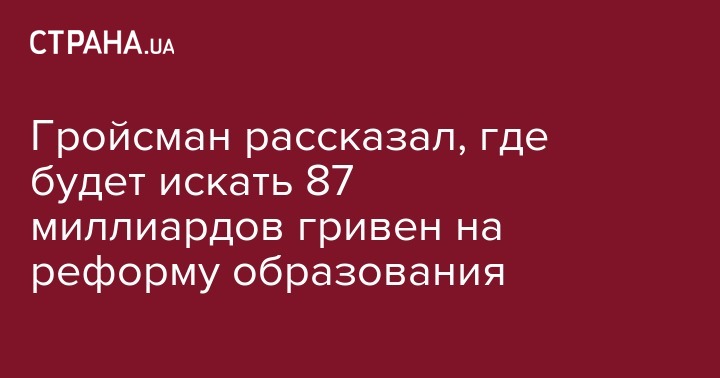 Глава правительства Владимир Гройсман заявил, что 87 миллиардов гривен на реформу образования будут искать как внутри страны, так и у международных партнеров. Об этом сообщается на сайте Кабмина.