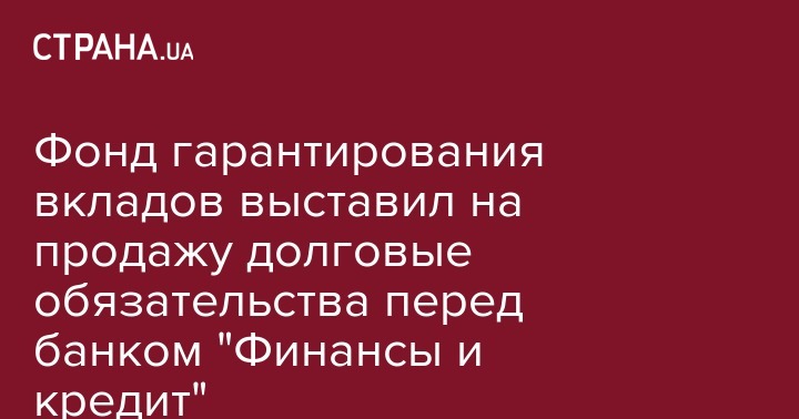 Фонд гарантирования вкладов выставил на продажу долговые обязательства перед банком "Финансы и кредит"
