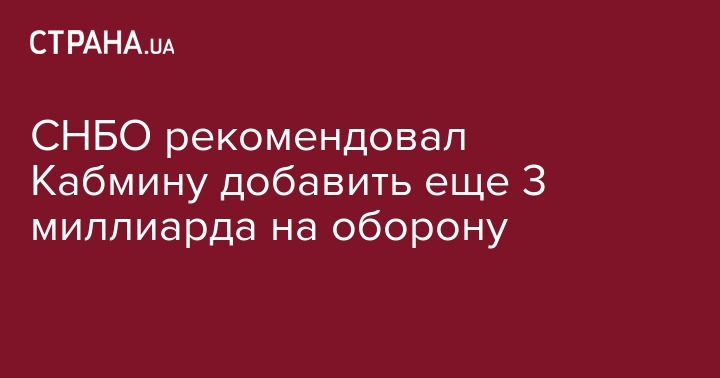 Совет национальной безопасности и обороны рекомендовал правительству Украины увеличить расходы на сектор безопасности и обороны дополнительно на 3 млрд грн.