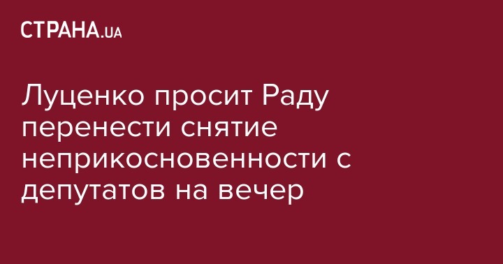 Генпрокурор Украины Юрий Луценко просит перенести рассмотрение вопроса о снятии неприкосновенности с депутатов на 16.00 вечера. Об этом сообщил спикер Верховной Рады Андрей Парубий.