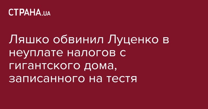 "Покажите пример всей стране - уплатите налоги. В частности за дом ваш в 900 квадратных метров, который зачислен на вашего 76-летнего тестя. Вы этот дом ввели в эксплуатацию в 2011 году, а ваш тесть на пенсии 12 лет. Оцените свой дом и оплатите с него налоги", - заявил Ляшко.