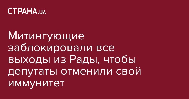 Участники массовых митингов под стенами Верховной Рады заблокировали все 6 выходов из здания парламента с требованием, чтобы нардепы приняли законопроект про отмену своей неприкосновенности. Об этом сообщается в группе "Долой депутатскую неприкосновенность" в Facebook.