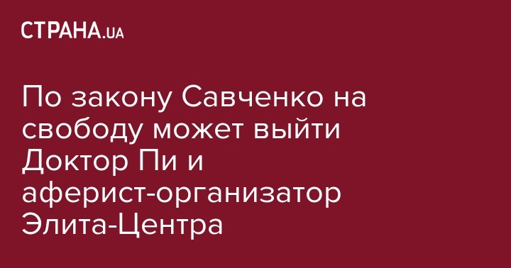 Из-за "закона Савченко" в ближайшее время на свободу может выйти Александр Шахов – организатор известной строительной аферы "Элита центр". Также рассматривается вопрос об освобождении "доктора Пи" Андрея Слюсарчука. Об этом сообщил экс-руководитель Государственной пенитенциарной службы Сергей Старенький, передает "Эспрессо ТВ".