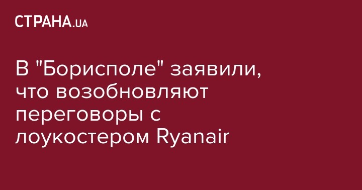 Международный аэропорт "Борисполь" решил возобновить переговоры с крупнейшим европейским лоукостером авиакомпанией Ryanair.
