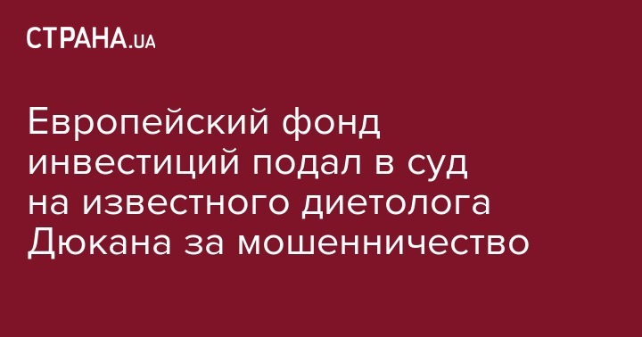 Европейский фонд прямых инвестиций подал в суд Нью-Йорка на известного французского диетолога Пьера Дюкана, обвиняя его в мошенничестве при получении финансирования. Об этом пишет газета Guardian со ссылкой на судебные материалы.