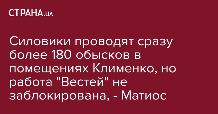 Силовики проводят сразу более 180 обысков в помещениях Клименко, но работа "Вестей" не заблокирована, - Матиос