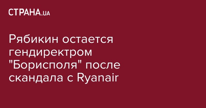 Рябикин остается гендиректром "Борисполя" после скандала с Ryanair